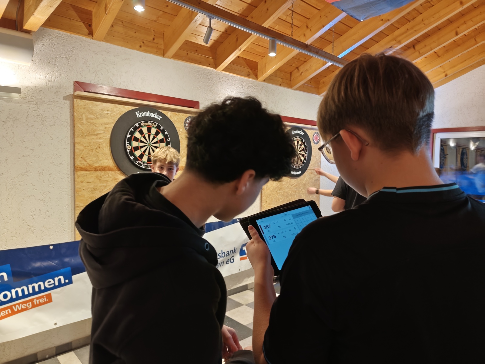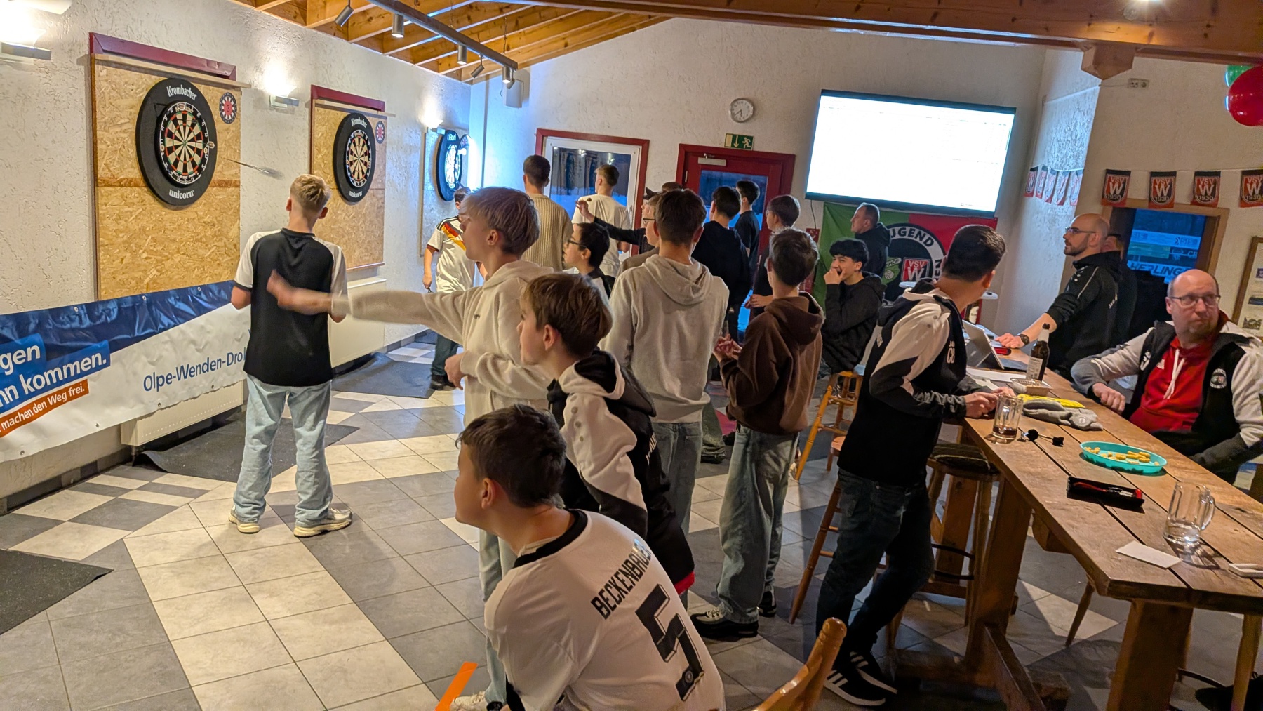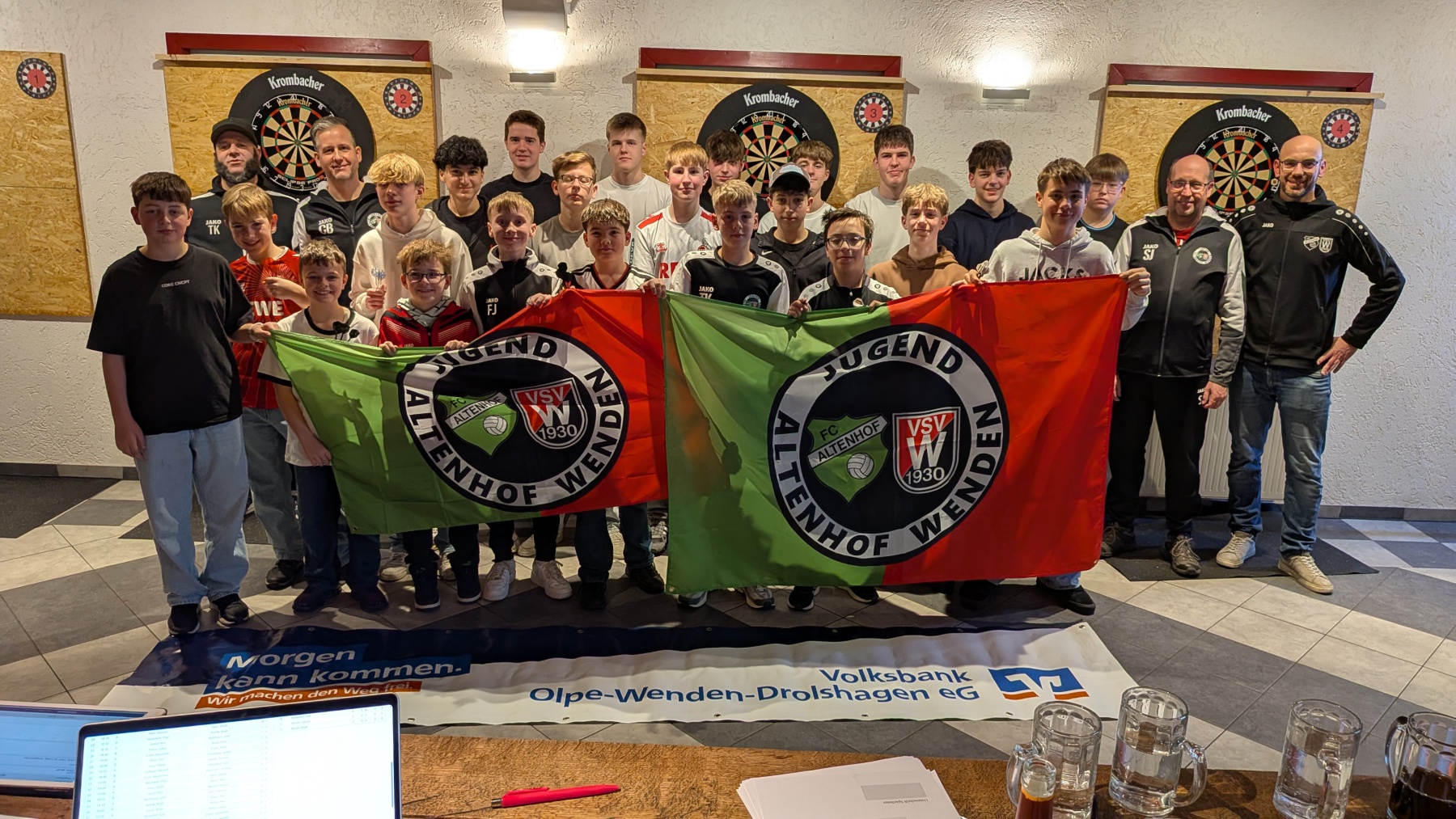 Danke auch an die Sparkasse Olpe-Drolshagen-Wenden für die Fußball-Dart Scheibe im XXL – Format.